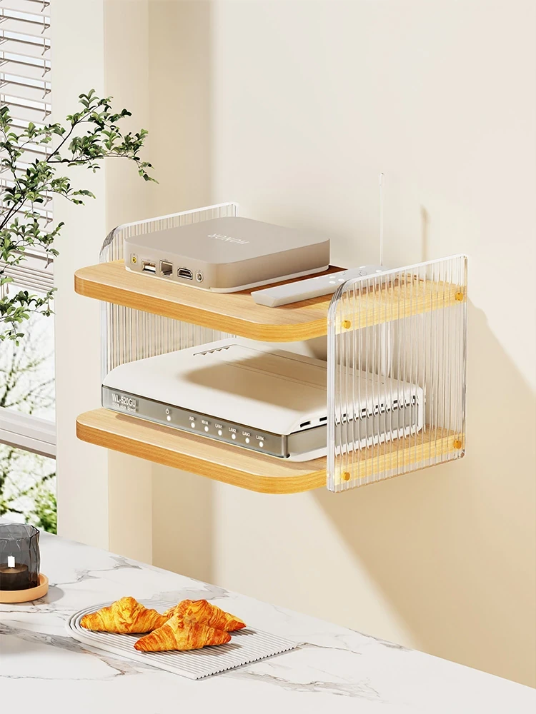 Wall-Mounted Router and TV Box Storage Shelf - No Drilling Required, Perfect for Living Room Organization and Space-Saving Solutions