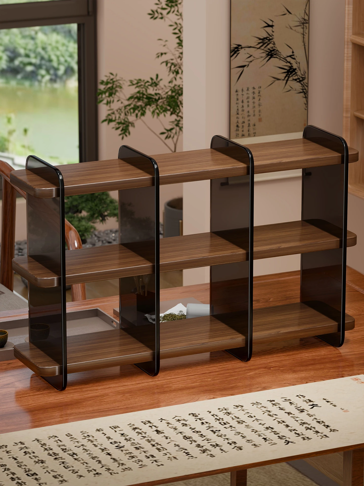 Compact Desktop Tea Cup Storage Rack - Elegant Chinese Zisha Teapot Display Stand for Organizing and Showcasing Your Tea Set