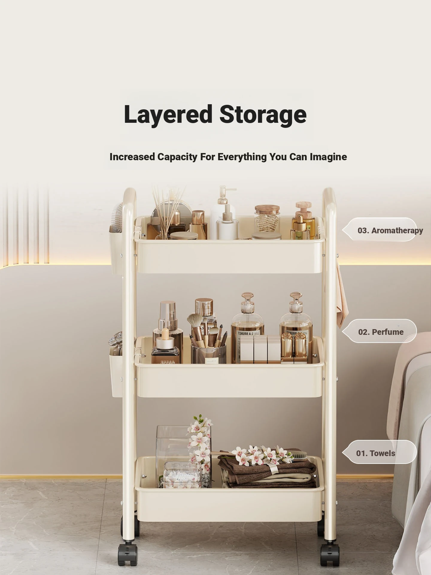 Multi-Tier Mobile Bookshelf - Stylish Floor Cart for Living Room, Snack Organizer, Easy Storage Cabinet for Books and Desk Essentials