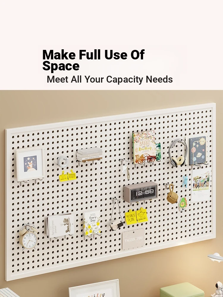 No-Drill Wall-Mounted Pegboard Desk Organizer - Stylish Metal Perforated Display Rack for Dorms and Home Decor, Perfect for Storage and Showcase!