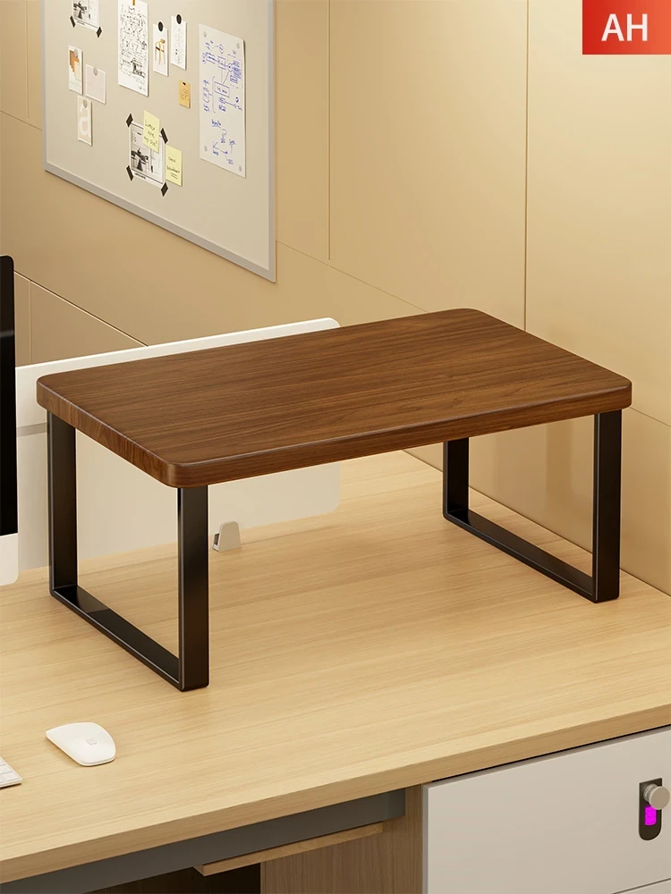 Solid Wood Small Printer Stand - Double-Layer Office Desktop Organizer for Copiers, Kitchen Microwave Height-Enhancing Rack