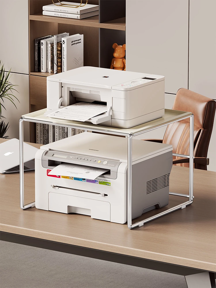 Compact Stainless Steel Printer Stand - Multi-Functional Dual-Layer Office Desk Organizer for Printers and Supplies, Ideal for Small Spaces