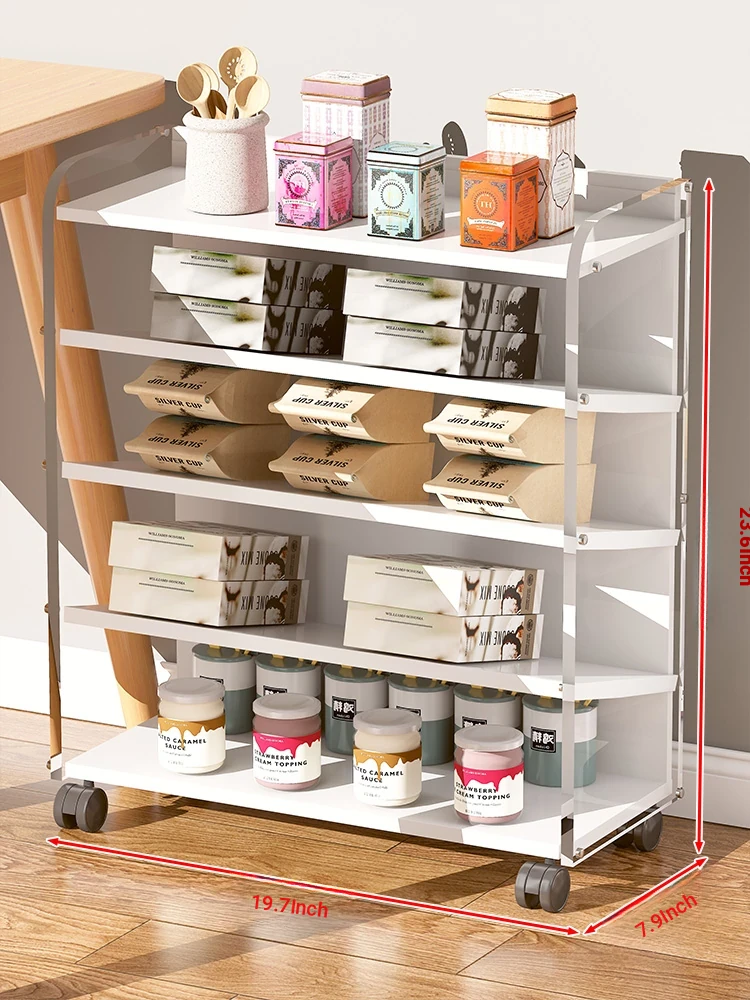 Mobile Rolling Bookshelf and Storage Cart - Multi-Layered Organizer for Books and Snacks, Perfect for Home and Office Use!