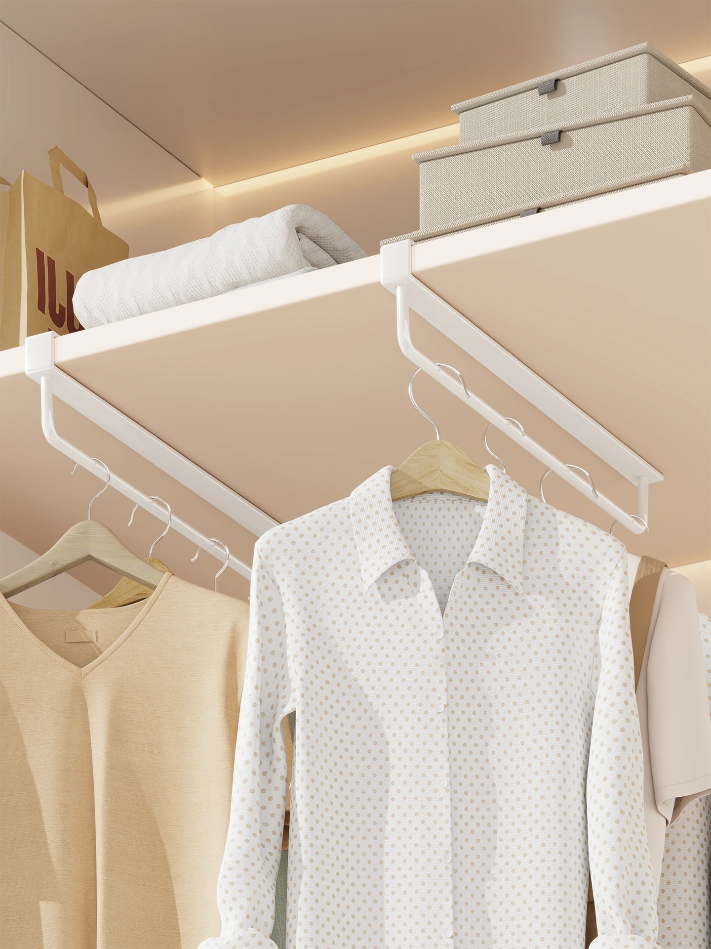 "Space-Saving Wardrobe Hanging Rod with Built-In Hangers - No Drill Ceiling-Mounted Drying Rack & Multi-Functional Storage Shelf for Vertical Closet Expansion"