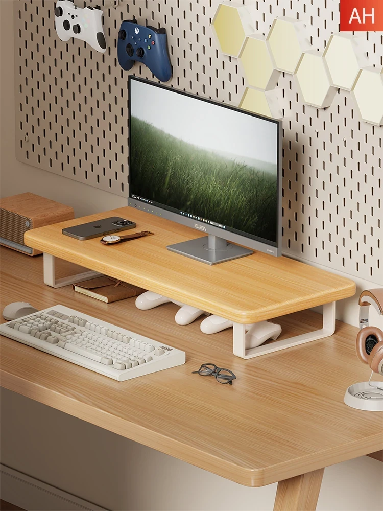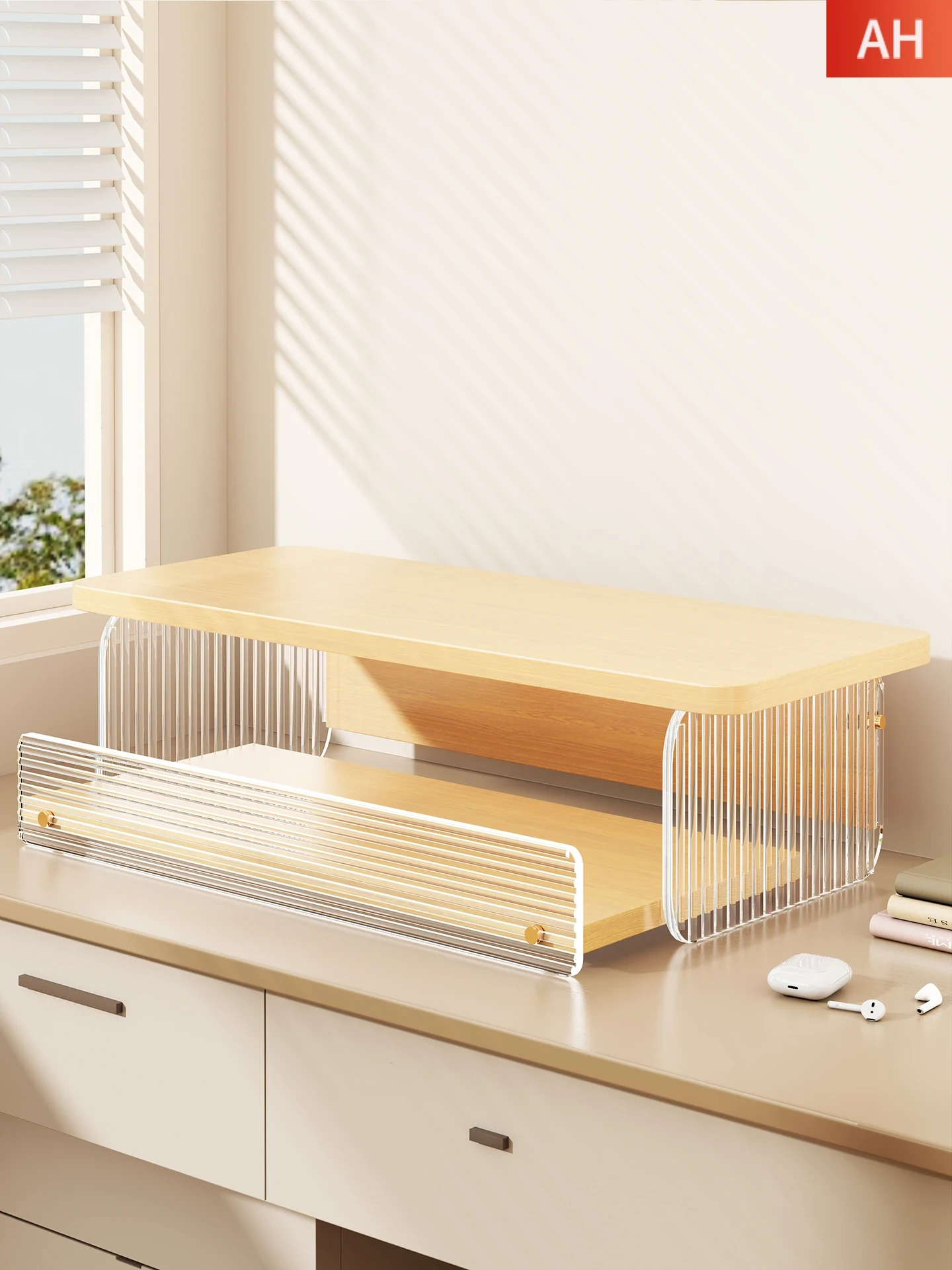 Solid Wood Office Desk Monitor Stand - Elevate Your Workspace with Stylish Storage and Organization Solution for Computers and Accessories