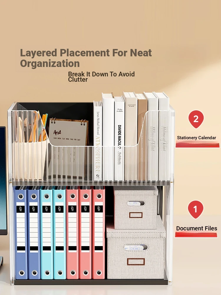Office Desk Document Organizer - Desktop Bookshelf & Storage Rack for Students - Efficient Workspace Tiered Storage Cabinet for Clutter-Free Organization