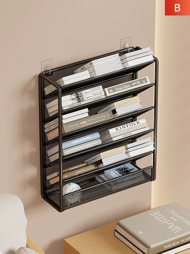 Wall-Mounted Bookshelf - Simple Multi-Layer Storage Rack for Home, Perfect for Organizing Documents, Magazines, and Picture Books Display.