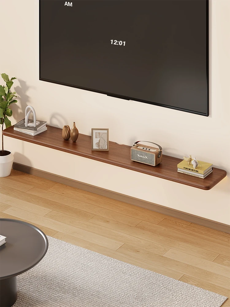 Wall-Mounted TV Stand with Floating Shelf for Set-Top Box - Solid Wood Horizontal Storage Rack Under TV, Perfect for Organizing Your Entertainment Space