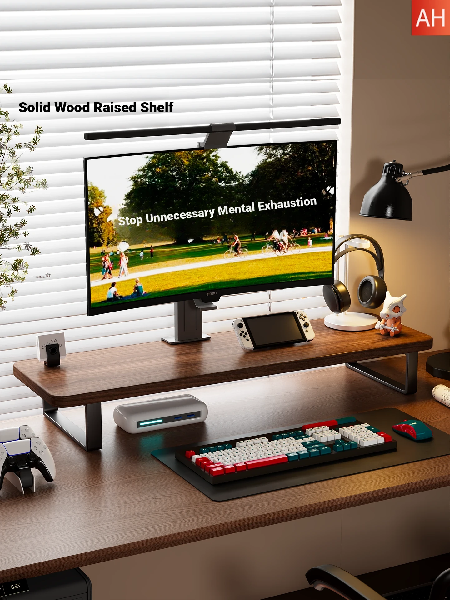 Solid Wood Monitor Stand Riser - Adjustable Height Desktop Shelf for Home Office, Extra Long Dual Screen Organizer with Multi-Tier Storage Solution