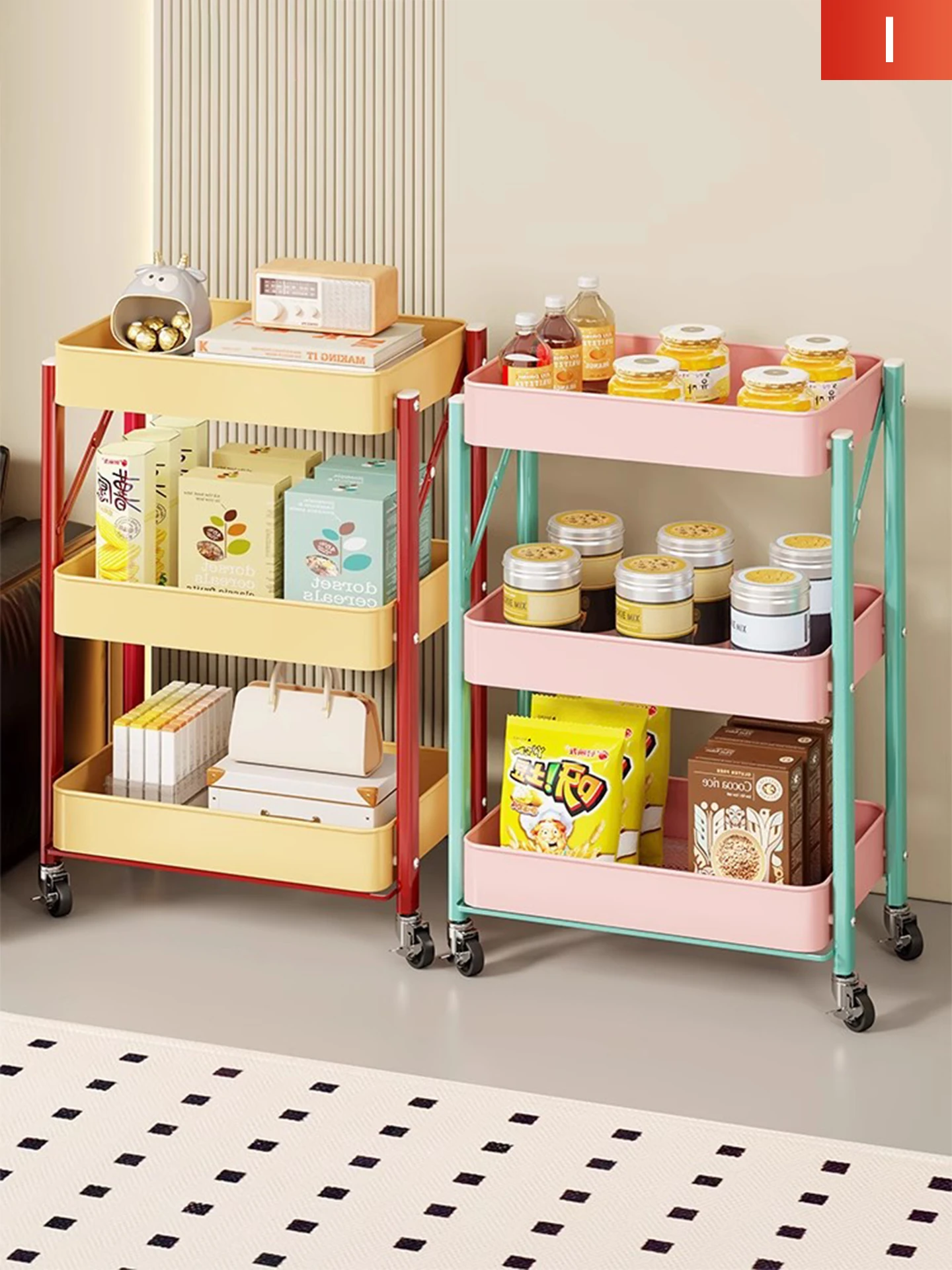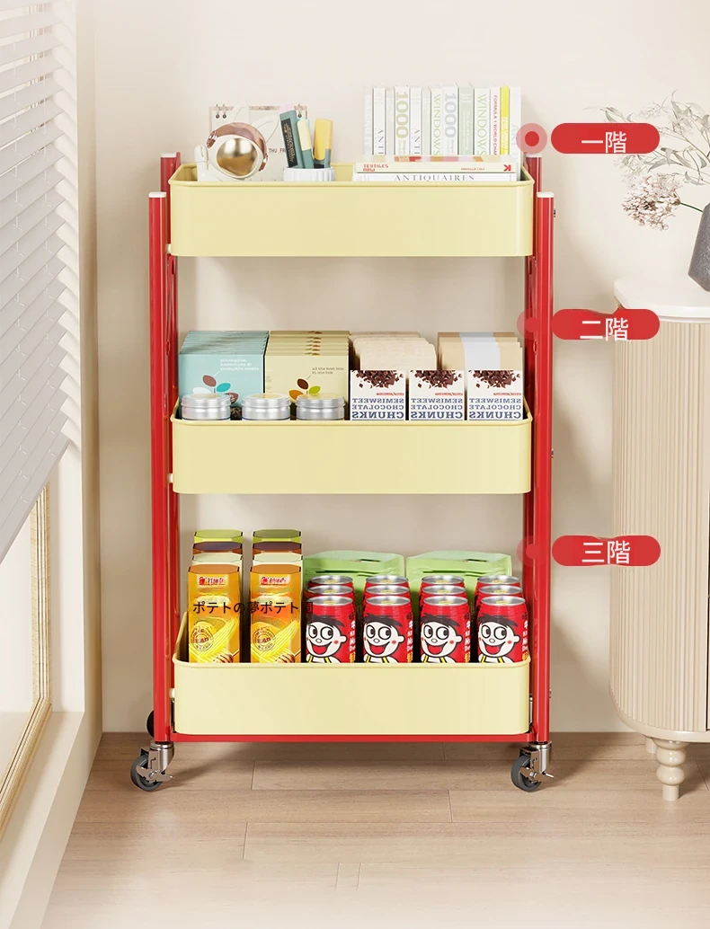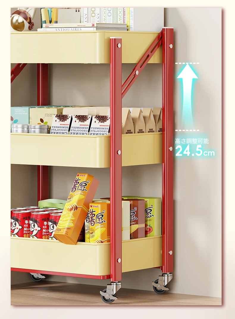 移動式小推車収納ラック|多用途のドパミンお菓子・フルーツ収納|ベッドサイドにもぴったり!便利なキャスター付きで、あなたの生活空間をおしゃれに整理整頓!