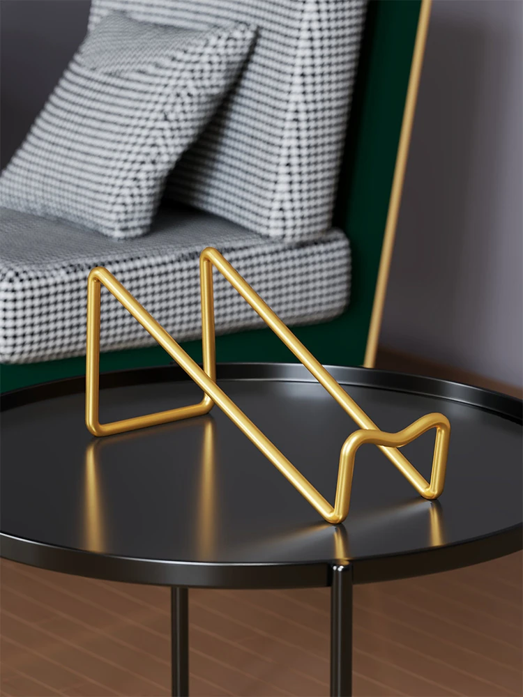 スタイリッシュなアイアン製の多層フロアシェルフ - 寝室やリビングに最適な収納・ディスプレイラック!おしゃれで機能的なトライアングルデザイン、あなたの空間を美しく整えます。