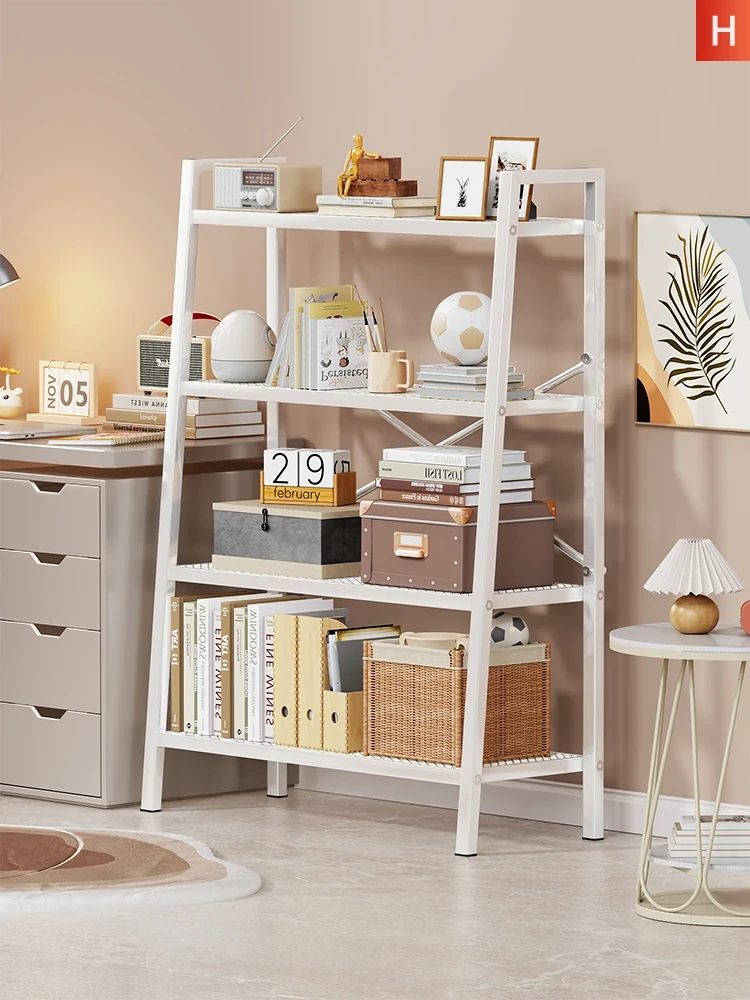 デスクサイドブックシェルフ - 調整可能なアイアン製のフロアブックスタンドで、宿舎やリビングにぴったり!多機能ストレージラックで、美しく整理整頓された空間を実現します。