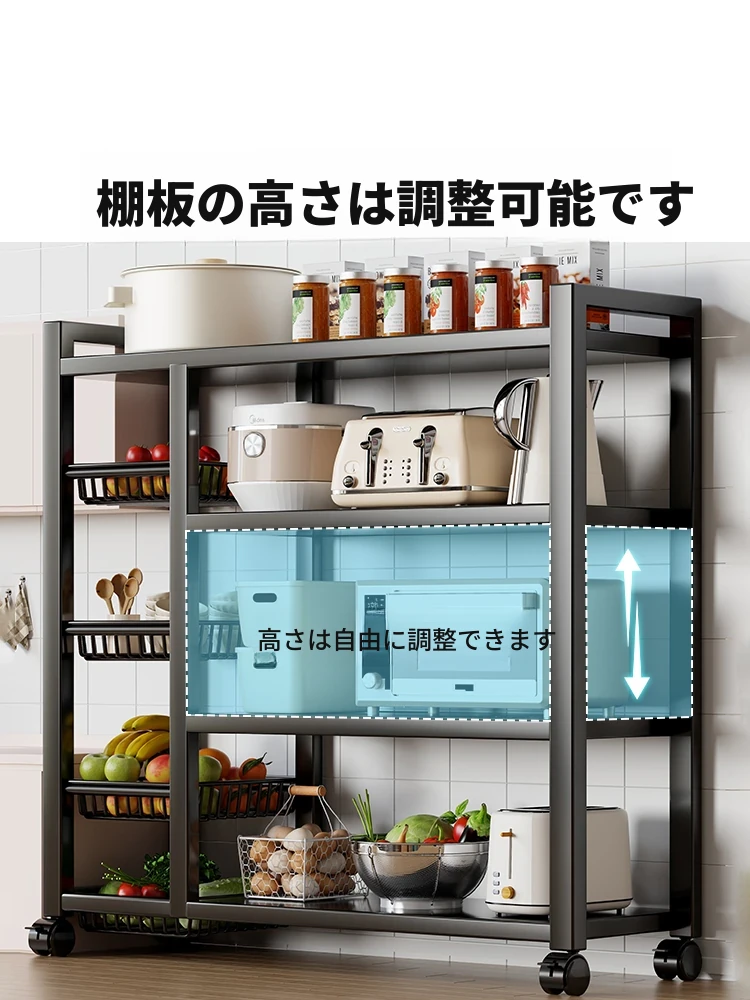 壁付け多機能キッチン収納ラック - お菓子もすっきり収納できる!省スペースで多層設計の便利な棚、スーパーマーケット風のインテリアにも最適!