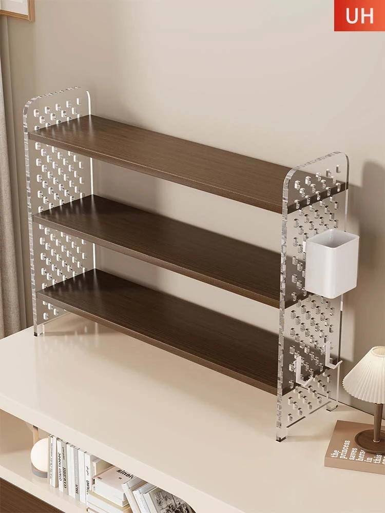 デスク用多層収納ラック - 家庭やオフィスに最適なアクリル製の本や小物整理に便利な神器!おしゃれで機能的なデザインで、スッキリとした作業空間を実現します。