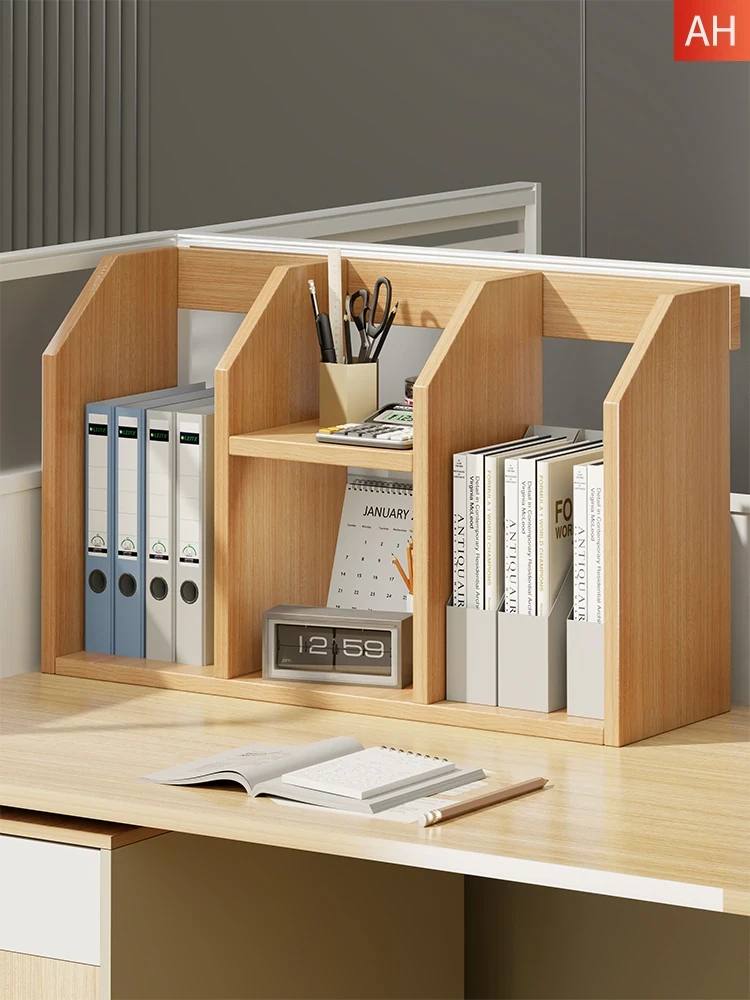 デスク上の整理整頓に最適!シンプルな木製書架 - オフィスや自宅、学生寮での書籍収納に最適な便利アイテム。あなたのワークスペースをスッキリと整えましょう!