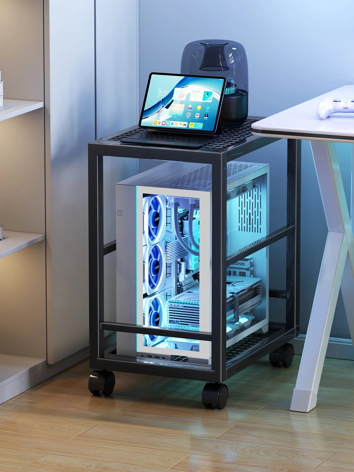 Gaming PC Tower Stand - Adjustable, Mobile Chassis Holder for Desktop, Perfect for Internet Cafes, Enhances Cooling and Space Efficiency