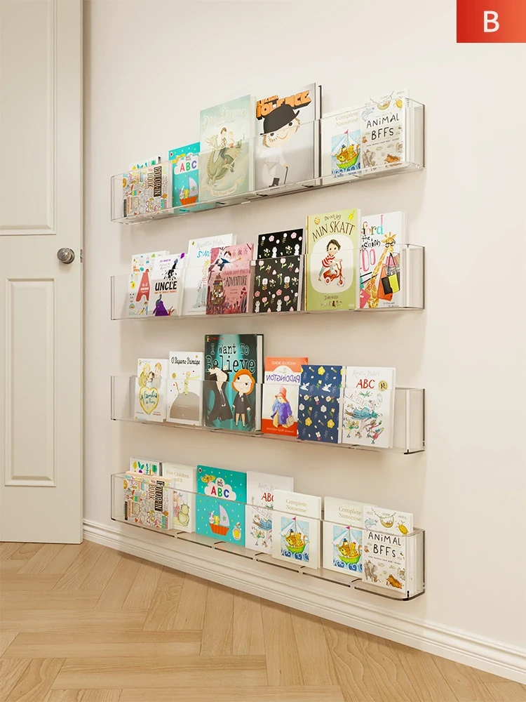 Transparent Wall-Mounted Bookshelf for Home - No-Drill Acrylic Storage Rack for Children's Picture Books and Magazines - Simple and Stylish Design Perfect for Any Room