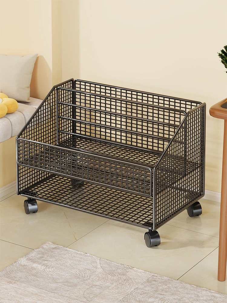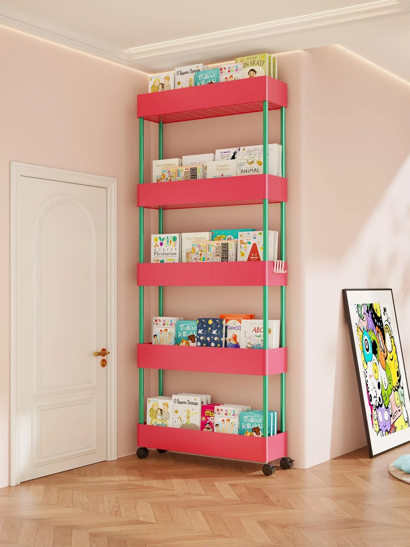 Narrow Multi-Layer Rolling Book Storage Rack for Kids - Floor-Mounted, Perfect for Small Spaces, Ideal for Organizing Picture Books with Wheels