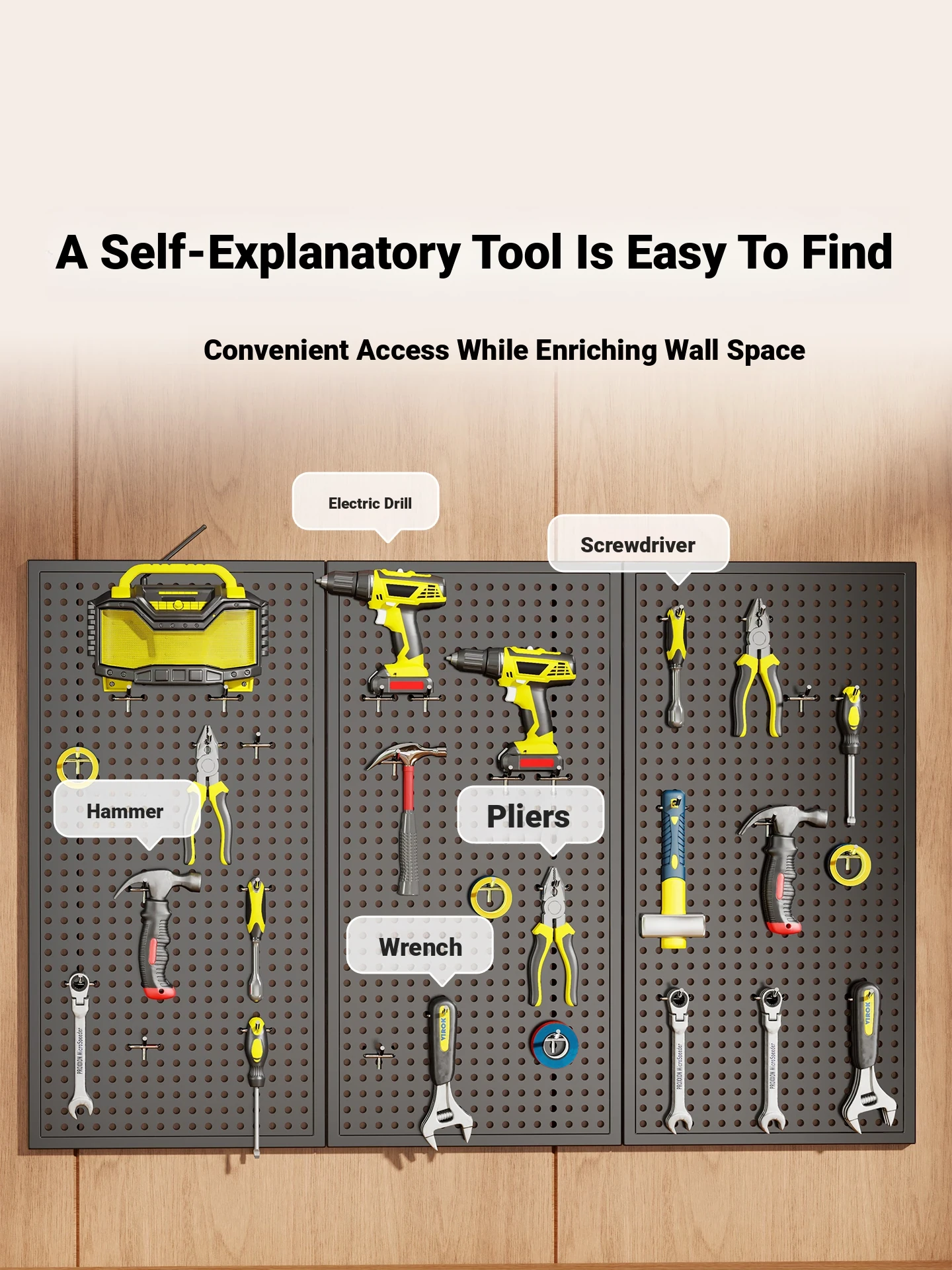 Stainless Steel Perforated Tool Wall Panel - No Drilling Required, Wall-Mounted Storage Rack for Hardware Accessories and Organization Solutions