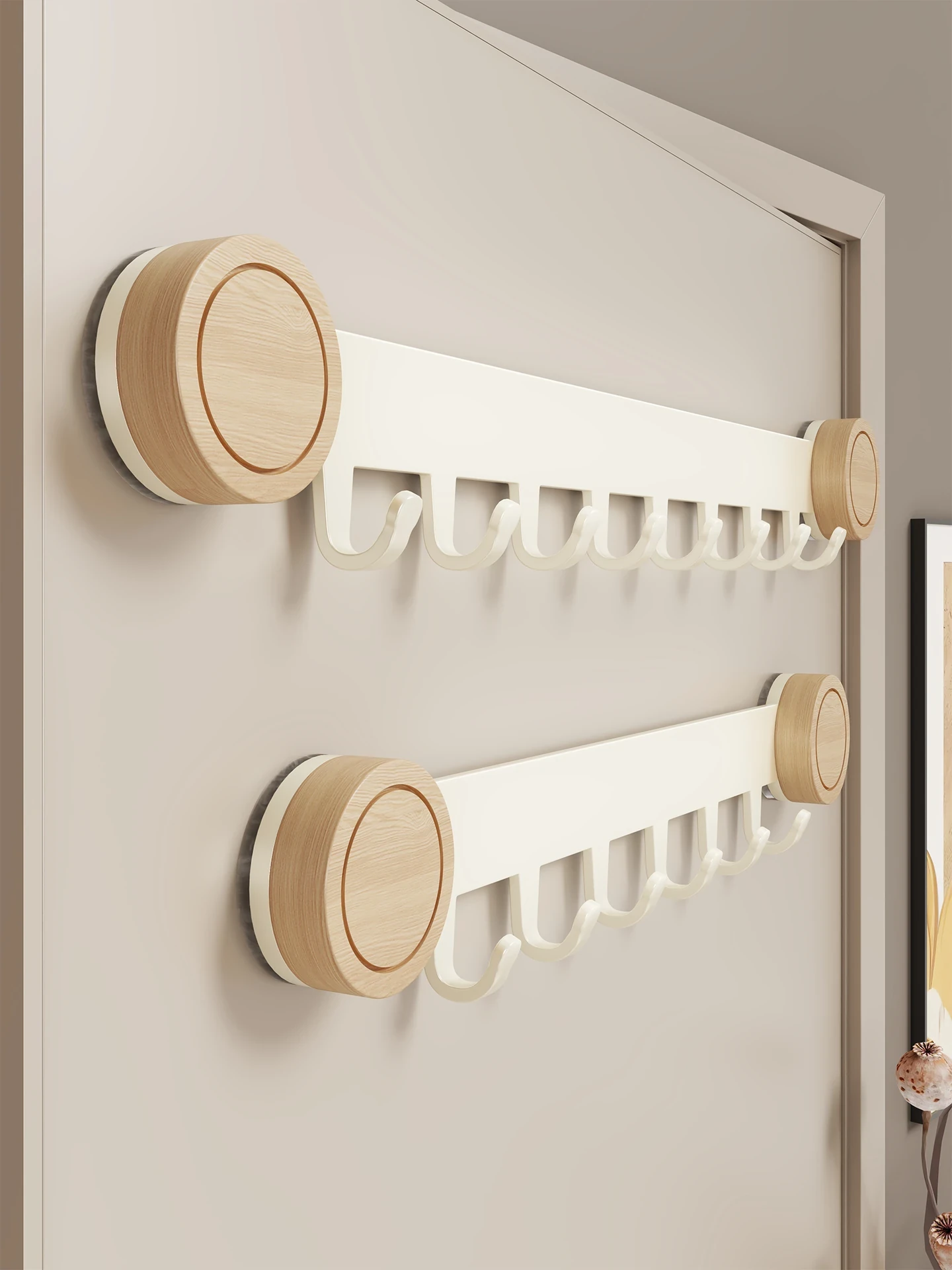 Solid Wood Wall-Mounted Hooks - No Drill Needed! Perfect for Home, Dorms & Entryways - Organize Hats, Keys & Accessories with Style and Ease!