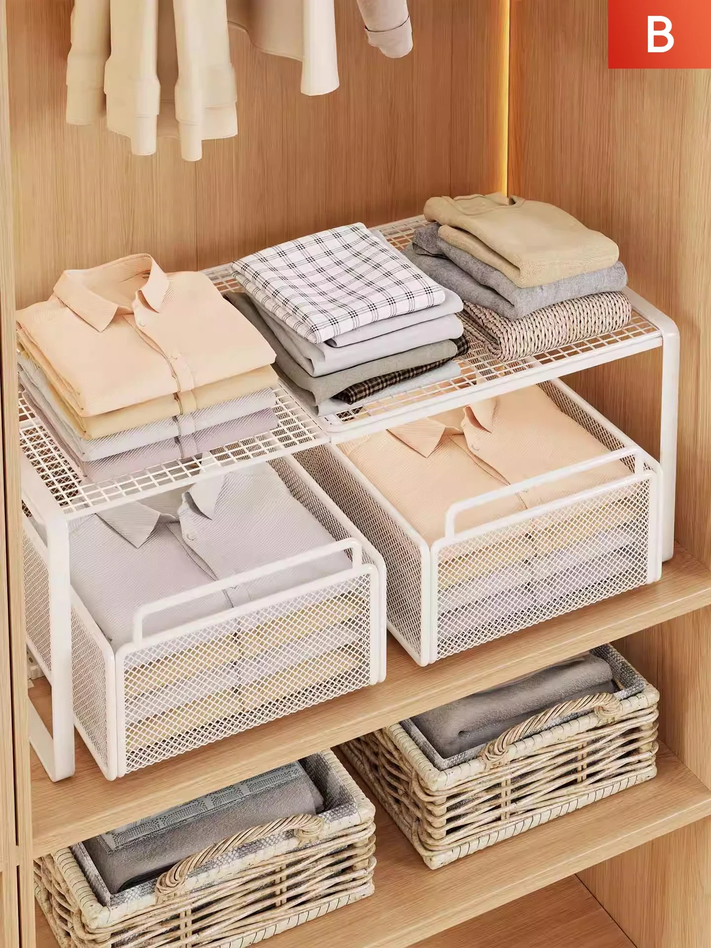 Adjustable Layered Storage Rack for Wardrobe - Space-Saving Closet Divider and Organizer for Clothes, Perfect for Dorms and Cabinets