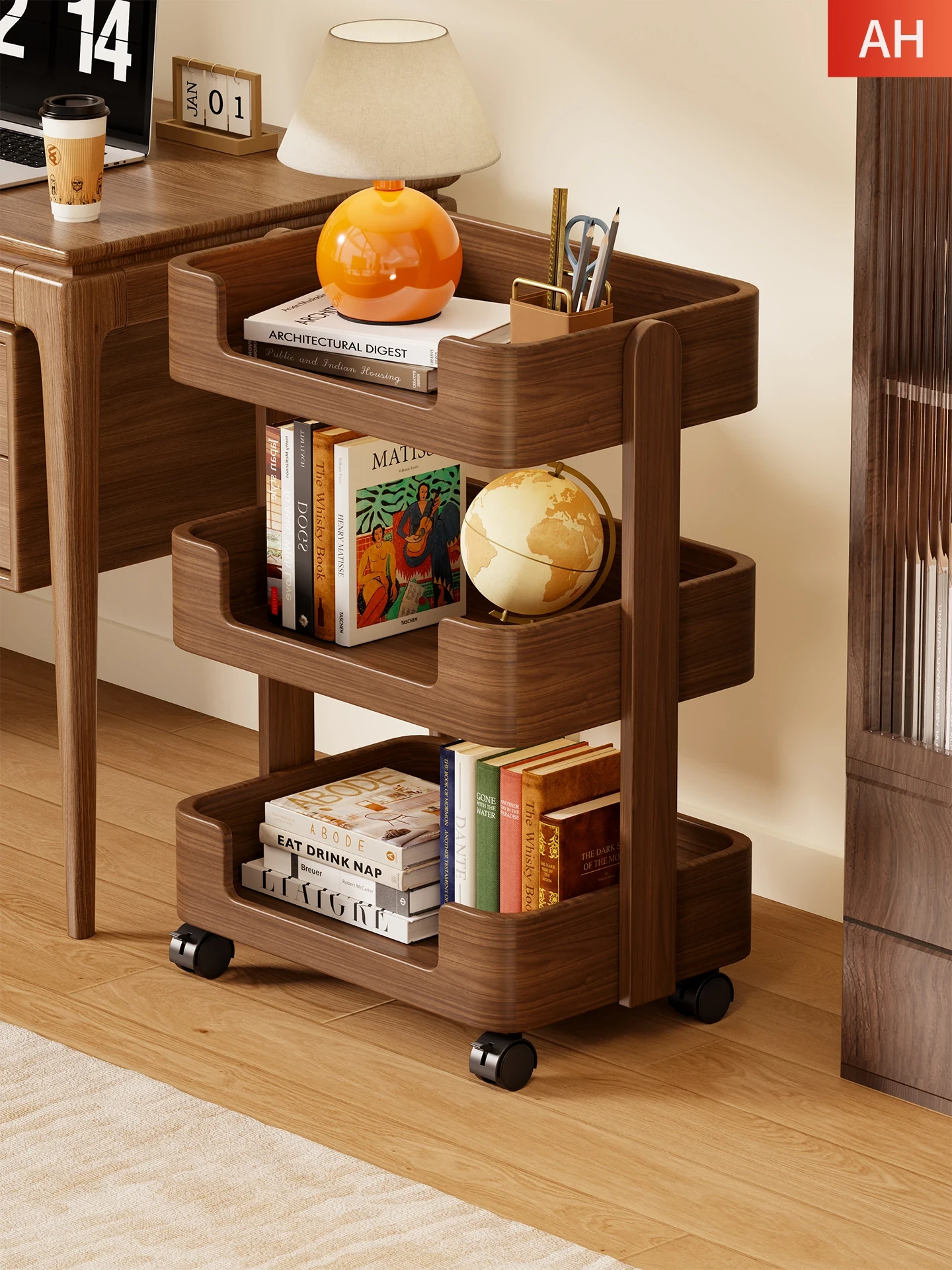Mobile Side Storage Rack with Wheels - Multi-Layer Bookshelf for Home Office, Perfect for Organizing Books Next to Your Desk, Easy Assembly and Convenient Design