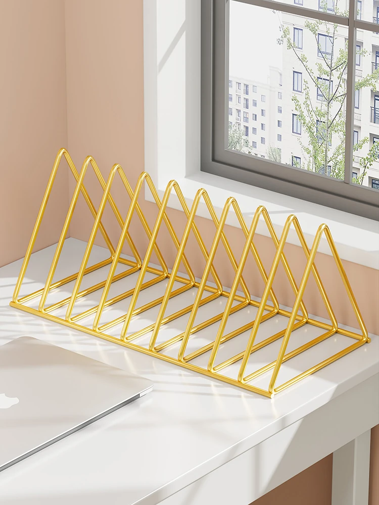Stylish Metal Desk Bookshelf - Minimalist Iron Triangle Storage Rack for Office & Home, Perfect for Organizing Magazines and Small Books in an Instagrammable Way!
