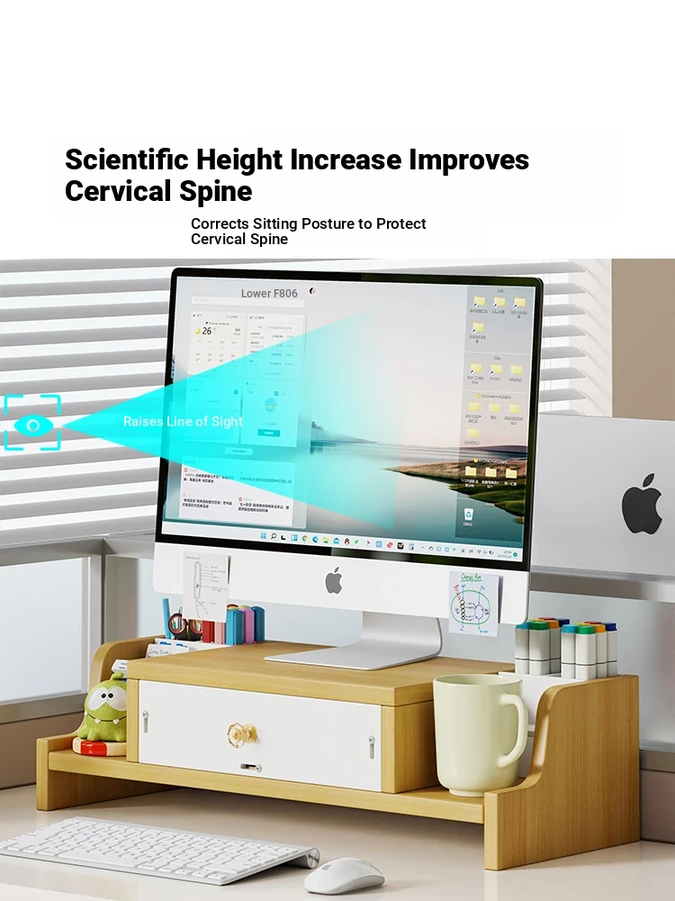Multi-Layer Desktop Monitor Stand with Drawers - Elevate Your Workspace, Maximize Storage, and Enhance Productivity with this Essential Office Organizer!