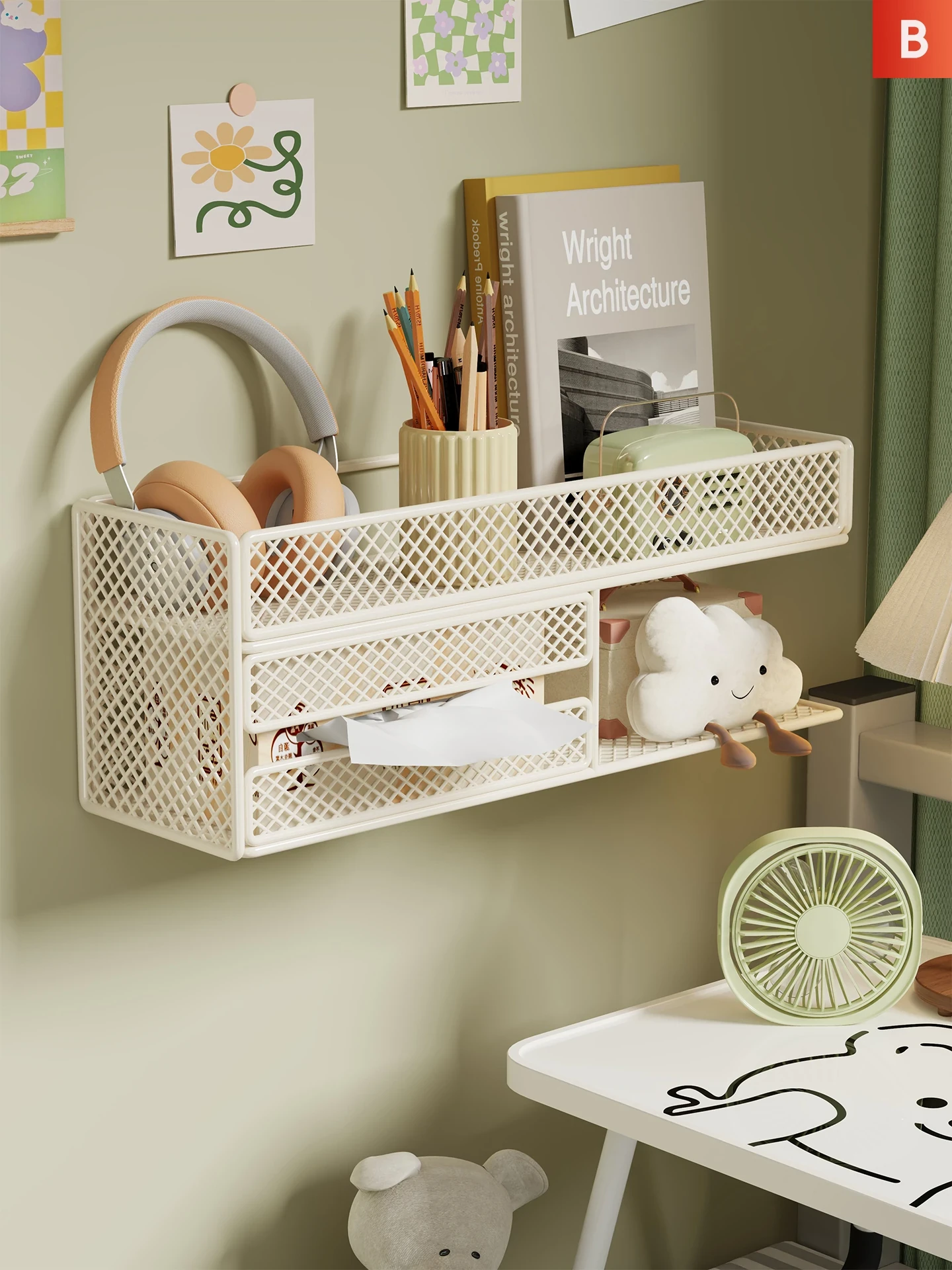 Wall-Mounted Storage Shelf - No Drilling Required, Perfect for Dorm Rooms and Bedrooms, Ideal for Organizing with Hanging Baskets and Shelves for Optimal Space Utilization!