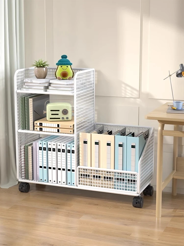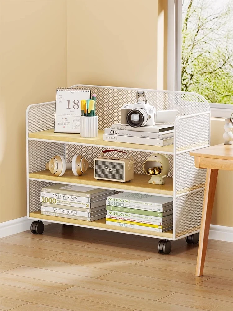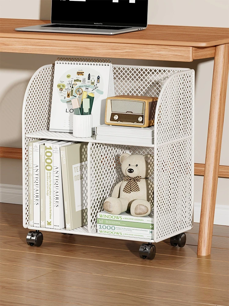 移動可能なデスク下書棚 - 寝室やリビングに最適な収納ラック!学生向けの書籍や雑誌をスタイリッシュに整理できるキャスター付きの収納展示キャビネット。お部屋をすっきり整えて、快適な空間を演出!