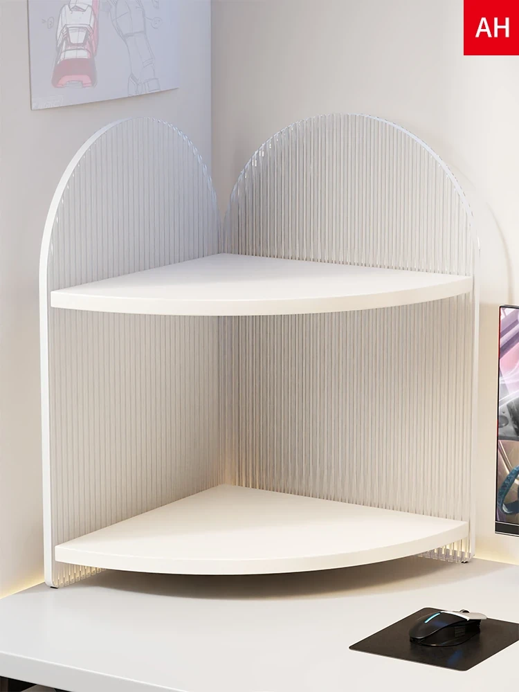 角にピッタリ!家用オフィスデスク用の三角形収納ラック - 書籍やフィギュアをスッキリ整理できる便利な収納キャビネットです!