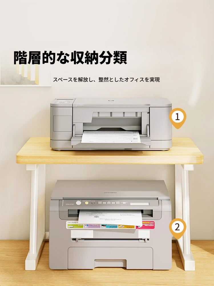 オフィスに最適!コンパクトな2段プリンターラック - デスク上の整理整頓に最適な書類スタンド&コピー機の収納にぴったり!