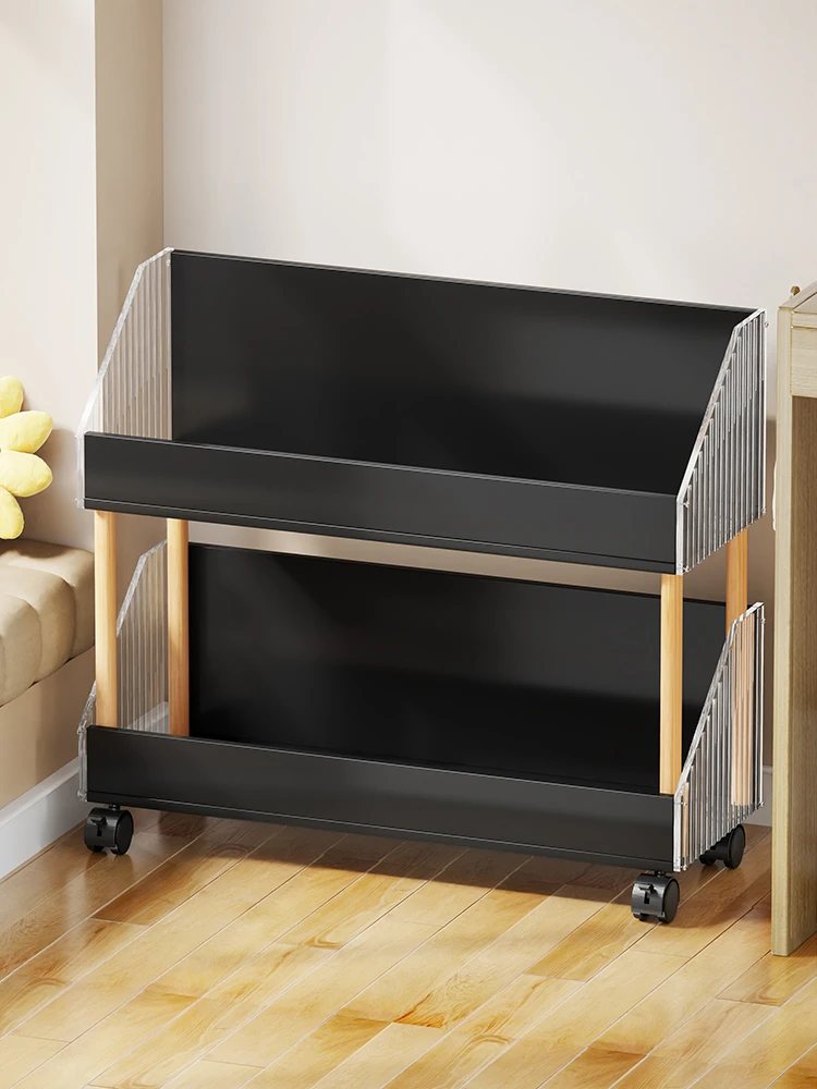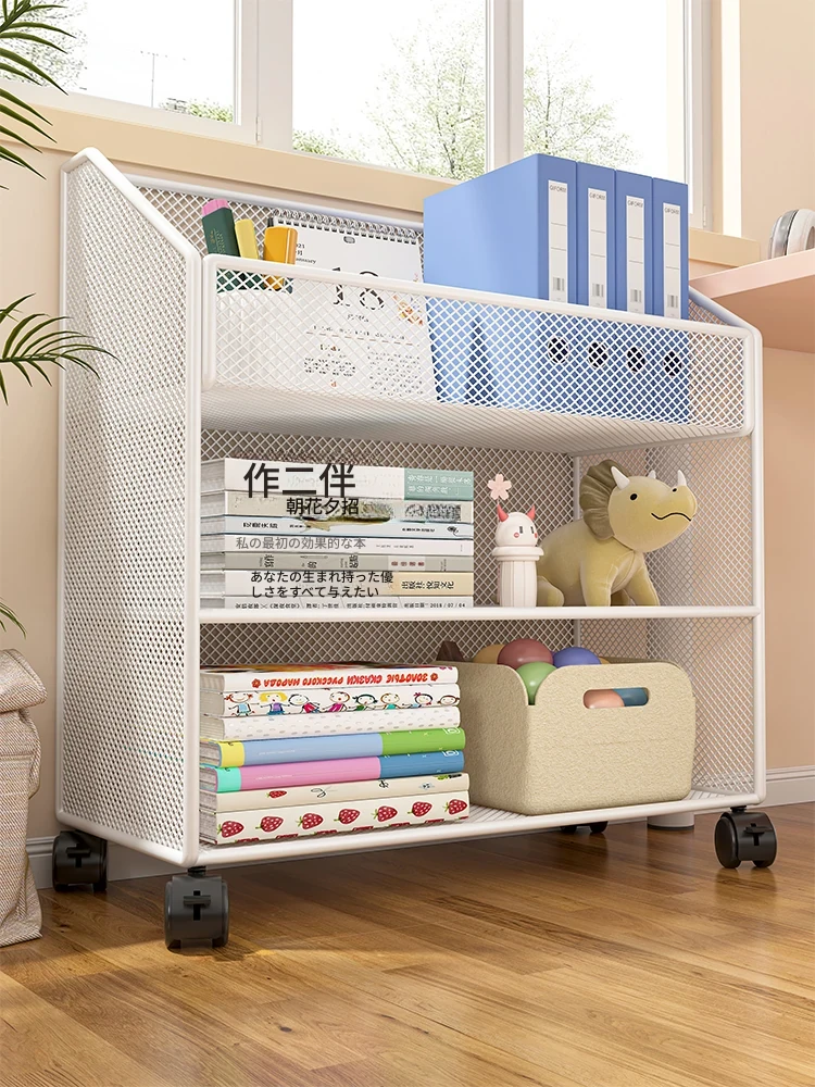 移動式書棚 子供用デスクサイド本収納キャビネット キャスター付き おしゃれなバッグラック 家庭用シンプルフロア本棚で、子供の学びを楽しくサポート!