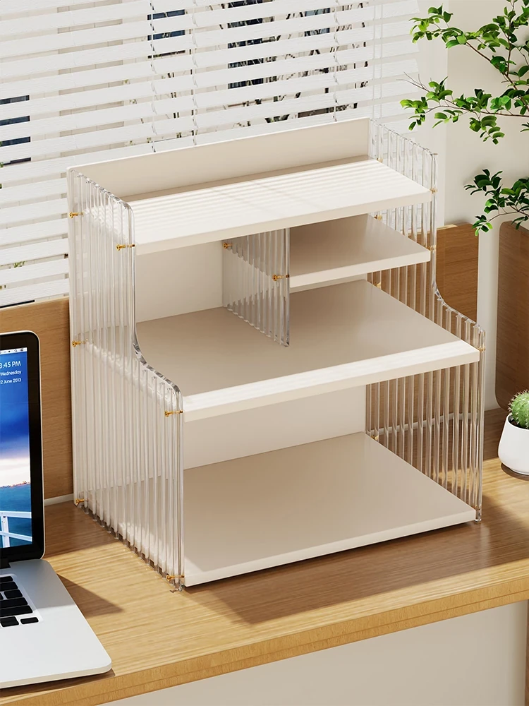 デスク上の本棚 多層構造のシンプルな収納ラック 家庭用 学生のためのストレージシェルフ オフィスデスクの整理整頓に最適!スマートなスペース活用で、すっきりとした作業環境を実現します!