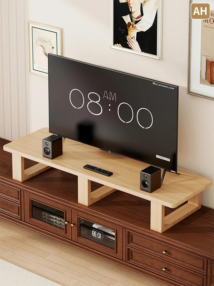テレビ用昇降スタンド - 家庭用テレビキャビネットに最適!液晶モニターを高くすることで、視線を合わせやすく、快適な視聴体験を実現。収納スペース付きで、リモコンや小物もスッキリ整理!