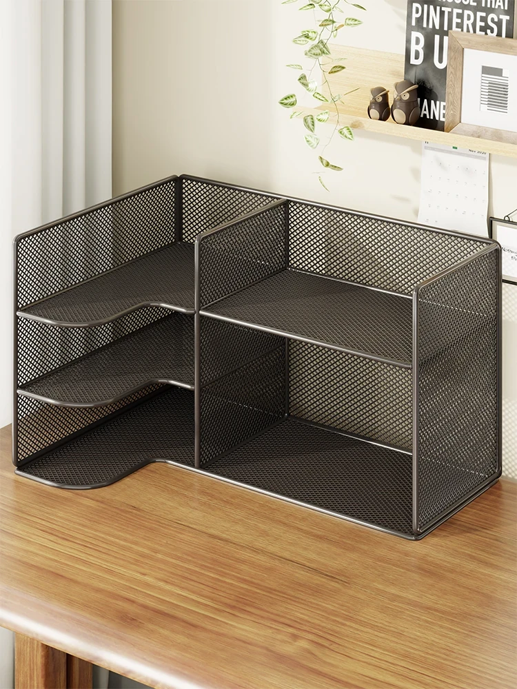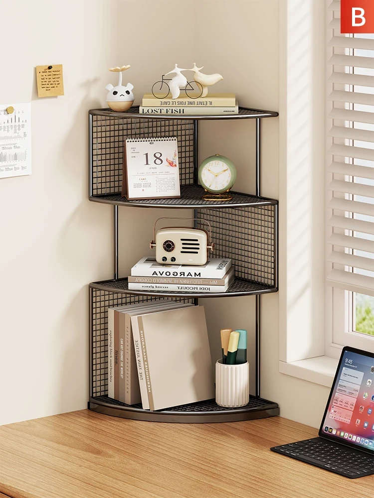 デスク用コーナー収納シェルフ|三角形の書架でオフィスデスクをスッキリ整理!多層型のコンパクトなコーナーラックで、デスク周りをスマートに演出!おしゃれで機能的な収納アイテムです。