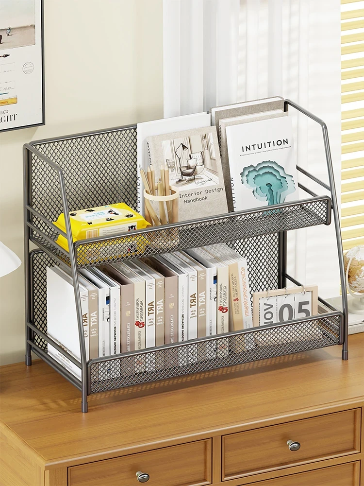 デスク上の簡易書棚 - 家庭用・オフィス用に最適なコンパクト収納ラック!書類整理もお手軽に。美しいデザインでデスク周りをスッキリ整頓!