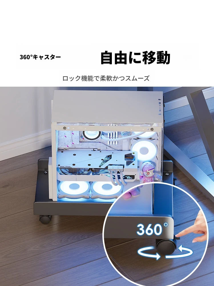 オフィスデスク下に最適!キャスター付きPCスタンド - 家庭用デスクトップパソコン用トレイ付き収納ラック。快適な作業空間を実現し、整理整頓も簡単!