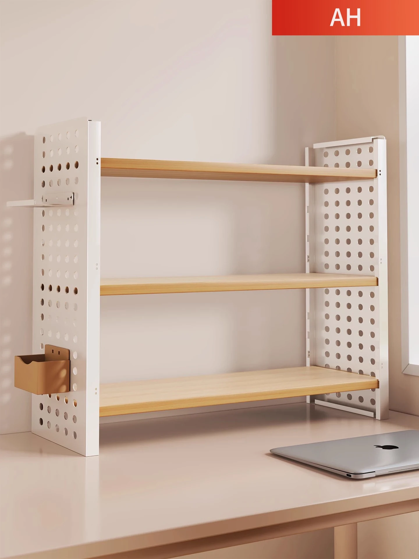 デスク用多段収納ラック|学生に最適な本や資料の整理整頓に!穴あきボードデザインで自由にカスタマイズ可能なスタイリッシュな書架。デスク上のスペースを有効活用し、作業効率をアップ!