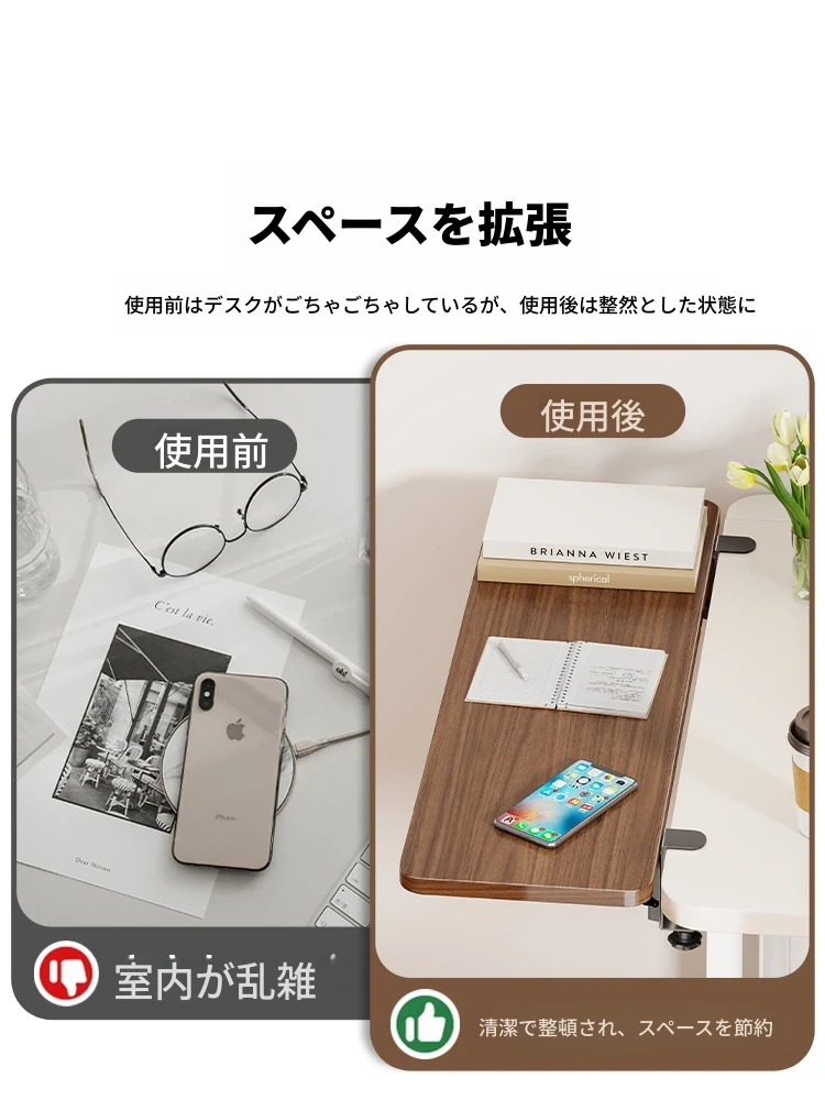デスク拡張ボード - 穴あけ不要!オフィスや自宅で使える、折りたたみ式キーボードトレイ付きのデスク延長器。作業スペースを広げて快適な作業環境を実現!